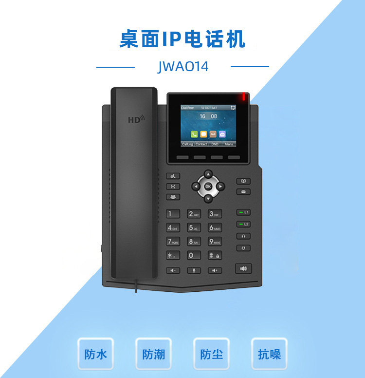 JWA013是一款入门级网络电话,具有高清语音,320x240 2.4 英寸彩色主 屏,支持百兆以太网,4个SIP 账号,支持 PoE 供电 (非标配需注明),三方电话会议等丰富功能;以及可外接 EHS 无线耳机等扩展功能;可满足不同的企业应用场景, 并提供优质的用户体验。